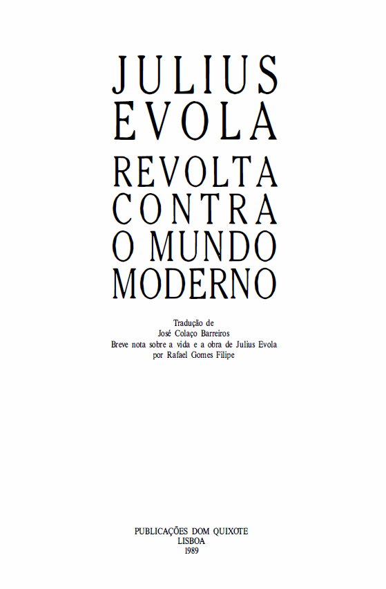 “Revolta Contra o Mundo Moderno” é amplamente considerada a magnum opus do filósofo italiano Julius Evola. Nesta obra densa e provocativa, Evola delineia as bases do pensamento Tradicionalista, contrastando a grandiosidade das civilizações antigas (O Mundo da Tradição) com a decadência espiritual e social da atualidade (O Mundo Moderno).