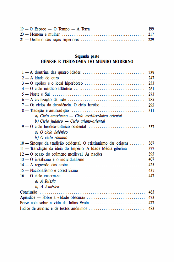 Com uma erudição vasta que abrange mitos, símbolos e doutrinas orientais e ocidentais, o autor oferece uma crítica contundente ao materialismo, ao progresso sem sentido e à perda do sagrado. O livro é um guia indispensável para compreender conceitos como a doutrina das quatro idades (incluindo a Kali Yuga ou Idade das Trevas) e a metafísica da história.